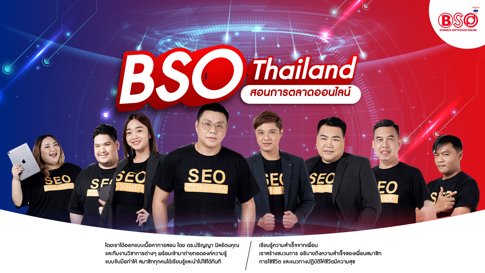 BSO คือ โครงการอบรมความรู้โดยนำเอาผู้ประกอบการตัวจริง มาแบ่งปันความเข้าใจ มาเล่าถึงปัญหาและวิธีการแก้ปัญหา จนประสบความสำเร็จนำมาแบ่งปันประสบการณ์ให้กับเพื่อน BSO ซึ่งในโครงการ BSO มีหน้าที่นำเรื่องราวที่เกิดขึ้นจริงมาสร้าง วิชาชีวิต นำมาลดขั้นตอนความสำเร็จ โดยนำมาเป็นบทสรุปความเข้าใจกับธุรกิจทั่วประเทศอย่างเป็นระบบและเมื่อผู้ประอบการหรือนักธุรกิจเข้ามาร่วม ยังสามารถนำเอาธุรกิจหรือบริการมาแบ่งปันให้เพื่อนมา แชร์ลิงค์ เพื่อสร้างรายได้จากธุรกิจของทุกคน ช่วยกัน แบ่งกัน เต็มใจให้ทุกคนด้วยระบบที่เป็นธรรม